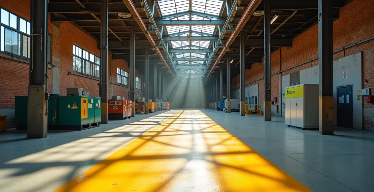 Para un arquitecto o facility manager, abordar la reforma de una nave industrial antigua es un desafío de dos caras. Por un lado, la nobleza de una estructura sólida y un espacio con historia. Por otro, un laberinto normativo donde el Real Decreto 486/1997 sobre lugares de trabajo se erige como un guardián inflexible. La tentación inicial es descargar una checklist y empezar a tachar: iluminación, pasillos, suelos. Sin embargo, este enfoque fracasa estrepitosamente cuando la realidad estructural se impone: pilares inamovibles, pasillos que no se pueden ensanchar y sistemas de ventilación obsoletos integrados en la propia construcción.